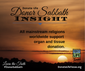 Donate Life Texas invites you to join in celebrating the National Donor Sabbath this November 10-12. This national observance is a time for people of all religions to honor those who have given the precious gift of organ, eye and tissue donation. Every year during this special time, donation and transplant organizations work closely with faith communities to bring the message of donation to congregations nationwide.